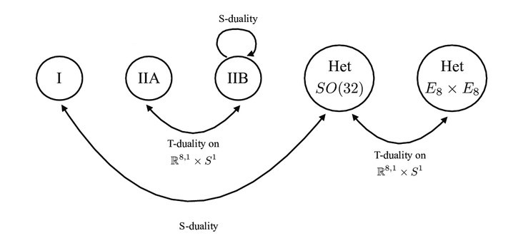 To relentlessly spring another surprise, it turns out that the two heterotic string theories are also related by T-duality! Here, the analysis is much more difficult and geometric, but it is sound. So another link has been forged, and the castles are no longer isolated.